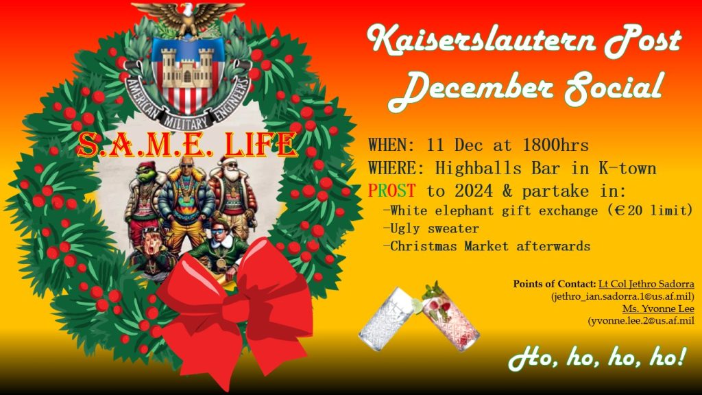 Join our Kaiserslautern Post members to socialize and celebrate the holidays on Wednesday, 11 December in Kaiserslautern.