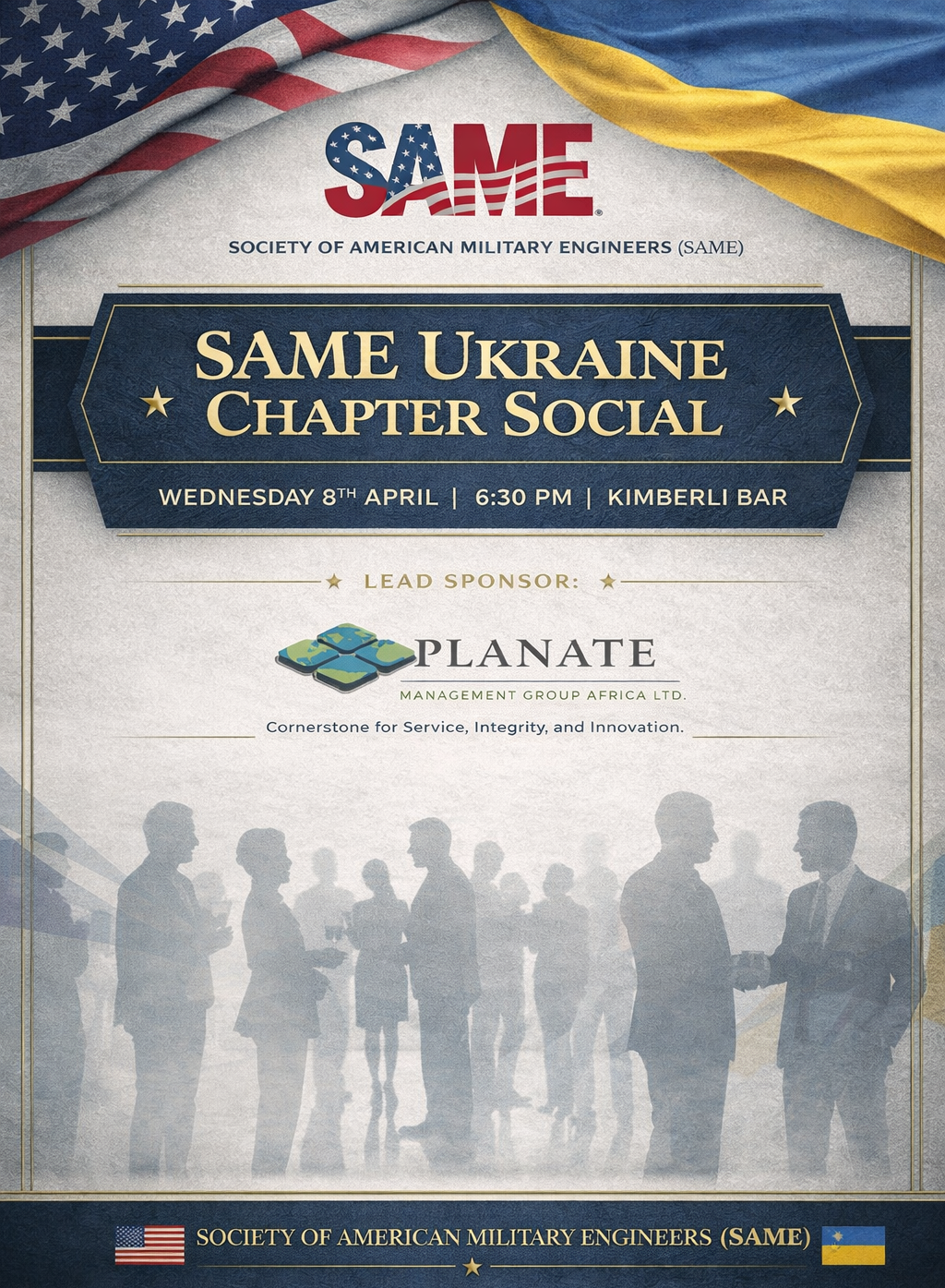 You are warmly invited to join us on April 8 at Kimberli Bar, Kyiv, for the SAME Ukraine Field Chapter Social—an opportunity to connect, unwind, and engage with fellow professionals in a relaxed setting. Join fellow engineers, military professionals, and industry partners for an evening of networking, connection, and camaraderie, hosted by Planate Management Group. -