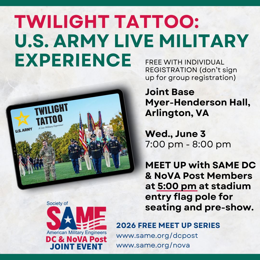 SAME DC & NoVA Posts – June 3 – FREE Meet Up Series – Twilight Tattoo: U.S. Army Live Military Experience