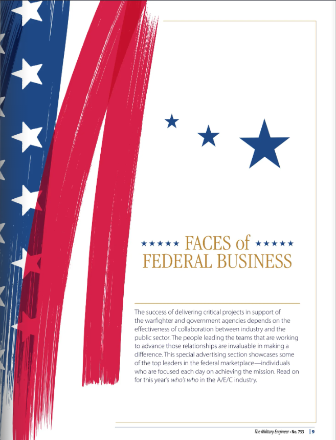 Don’t miss this exclusive opportunity for early access to SAME’s 2025 Faces of Federal Business. This annual print and online showcase of who’s who in the federal A/E/C marketplace puts your company’s leadership in front of the right audience at the right time.