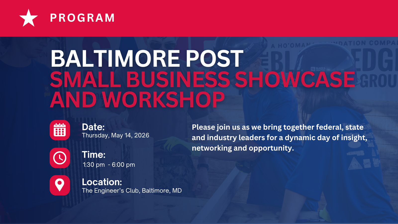 The Baltimore Post accomplishes this goal locally by supporting regular meetings and other professional/social activities attended by members of local government, military, private industry, students and other interested parties. These meetings are announced via our e-mail distribution list and social media pages. We are supported by the national Society of American Military Engineers and publications such as The Military Engineer, which also promotes the interests and goals of our society and its members. Please peruse our website to discover the benefits of SAME Baltimore Post membership or to get more involved.