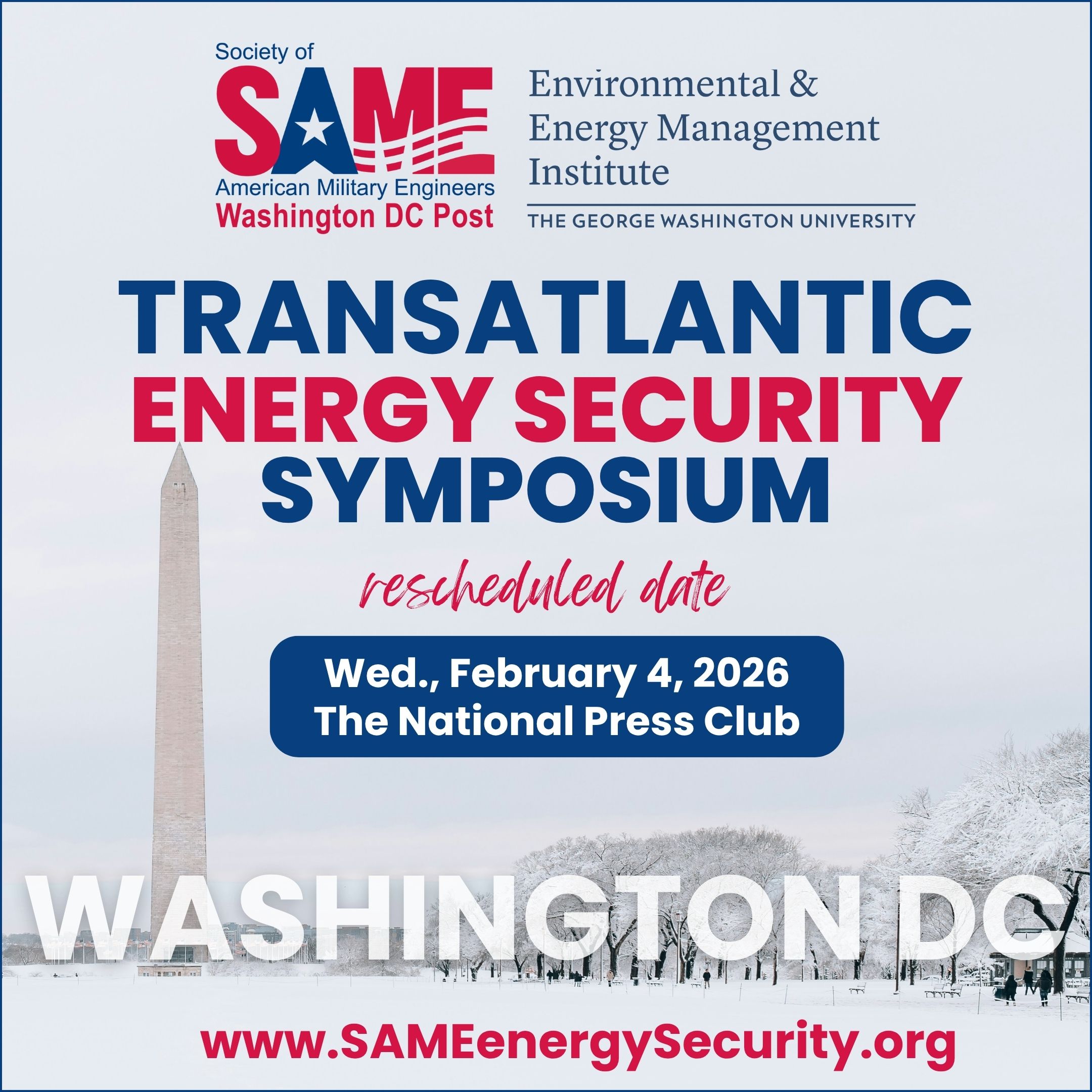 Registration is open! The SAME DC Post in association with the GWU EEMI presents the Transatlantic Energy Security Symposium at the National Press Club on Wednesday, February 4, 2026. See full details at www.SAMEenergySecurity.org. Sponsorships available! This full-day symposium brings together U.S. and European leaders from government, defense, utilities, industry, and academia to confront one […] -
