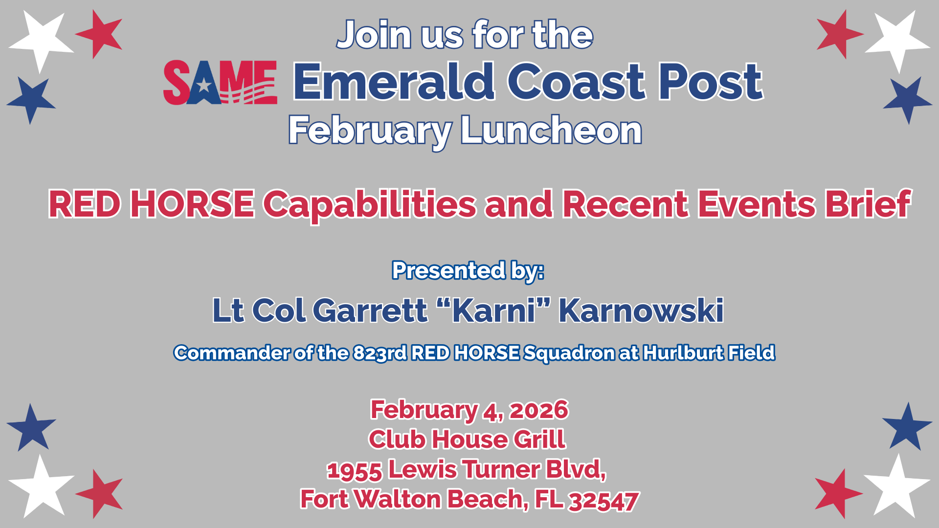 Please peruse our website to discover the benefits of SAME Emerald Coast Post membership.