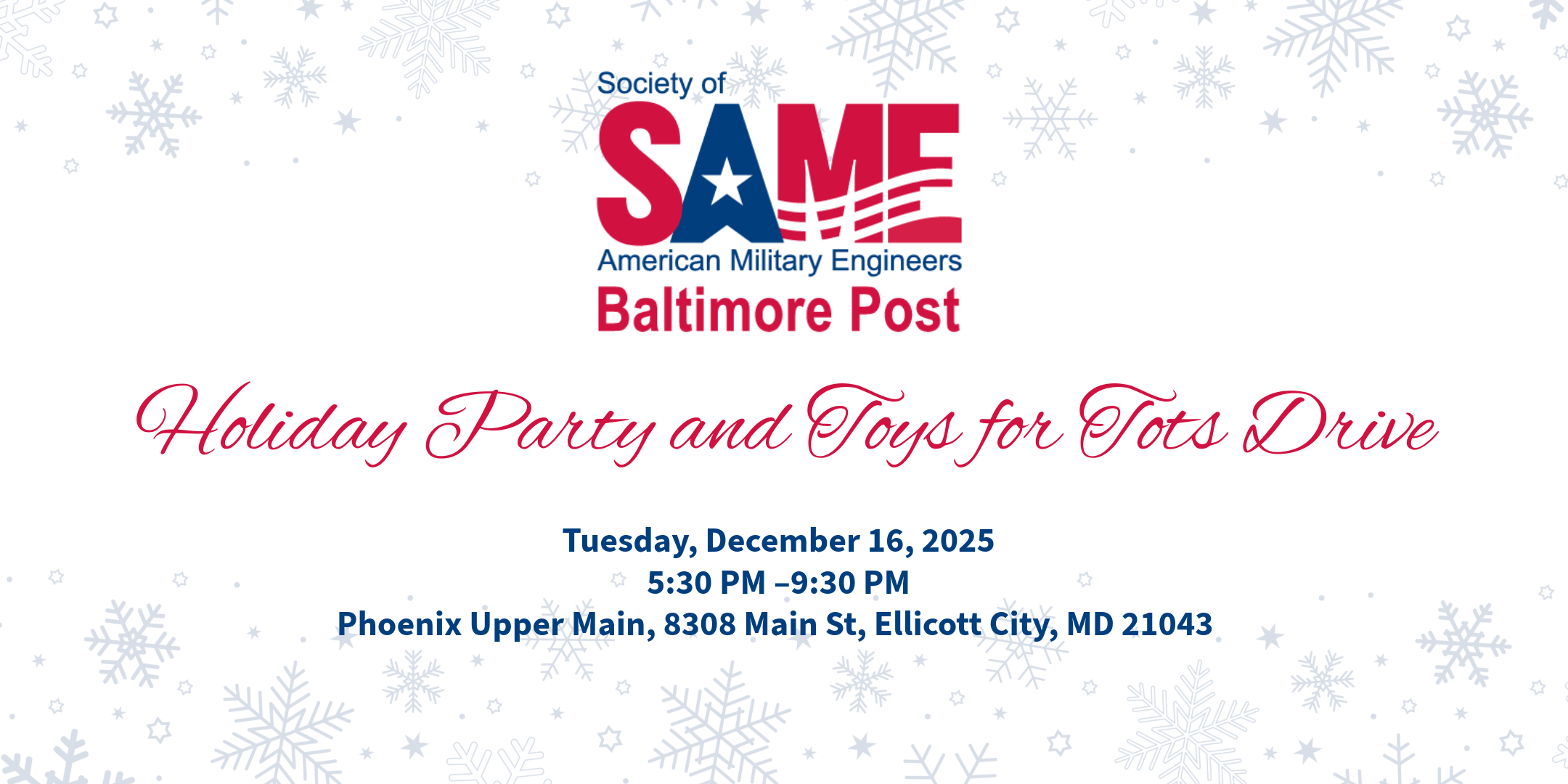 Come to the SAME Baltimore Post Holiday Party! Join us for a night of fun, laughter, and celebration at Phoenix Upper Main. It’s time to unwind and catch up with fellow members after the busy holiday season. Come ready to mingle, dance, and enjoy delicious food and drinks. This in-person event is the perfect opportunity to network and make new connections. Don’t miss out on the chance to kick back and relax with your Baltimore Post community before joining the December FY26 Federal Briefings! We can’t wait to see you there!
