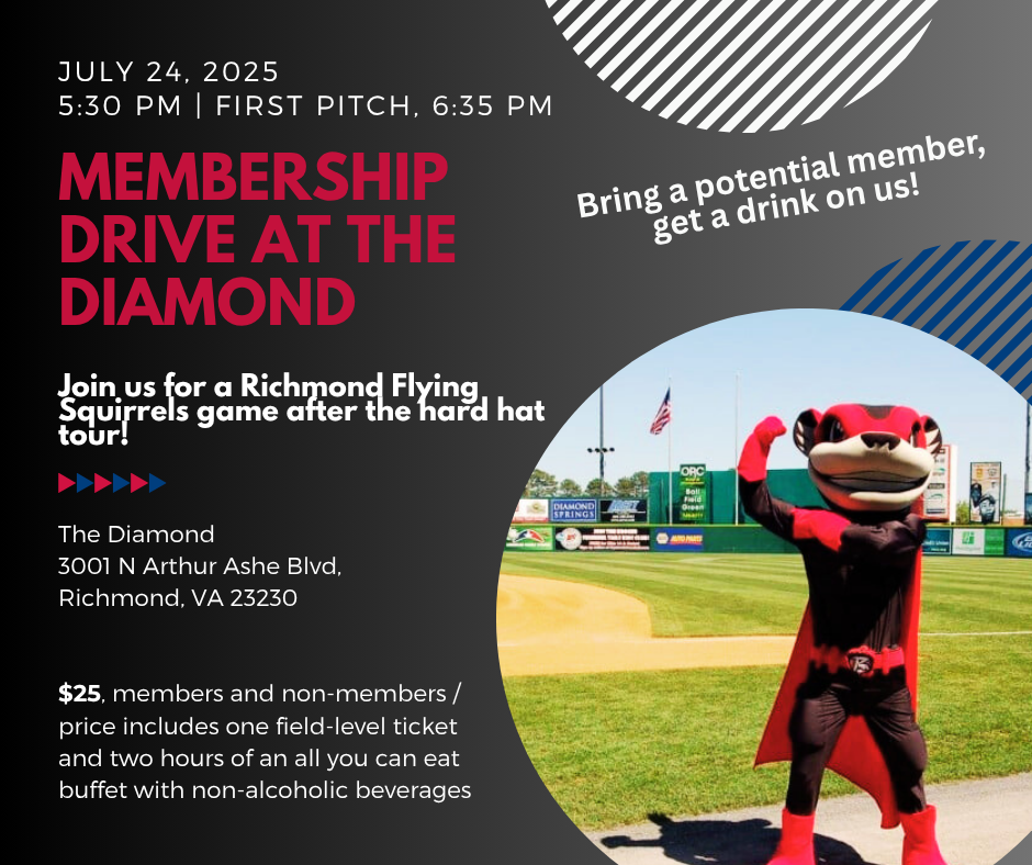 Join us for our annual Membership Drive at The Diamond! All tickets include one field-level seat and two hours access to an All You Can Eat Buffet with non-alcoholic beverages. All attendees are invited to join us before the game for our Hard Hat Tour of the new CarMax Park being built next door at no extra charge. Details for the tour can be found in the event link.