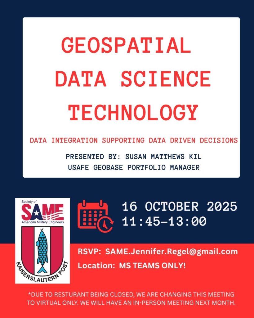 Meeting link: Geospatial Data Science Technology- SAME Kaiserslautern Post | Microsoft Teams | Meetup-Join