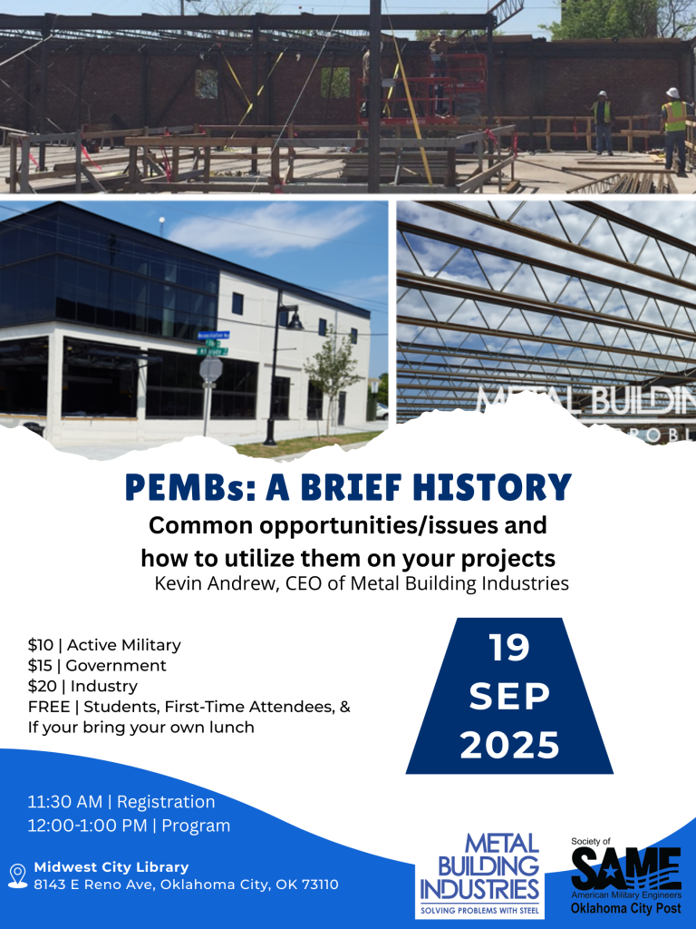 SAME OKC Presents: PEMBs – A Brief History, Common Opportunities/Issues And How To Utilize Them On Your Projects