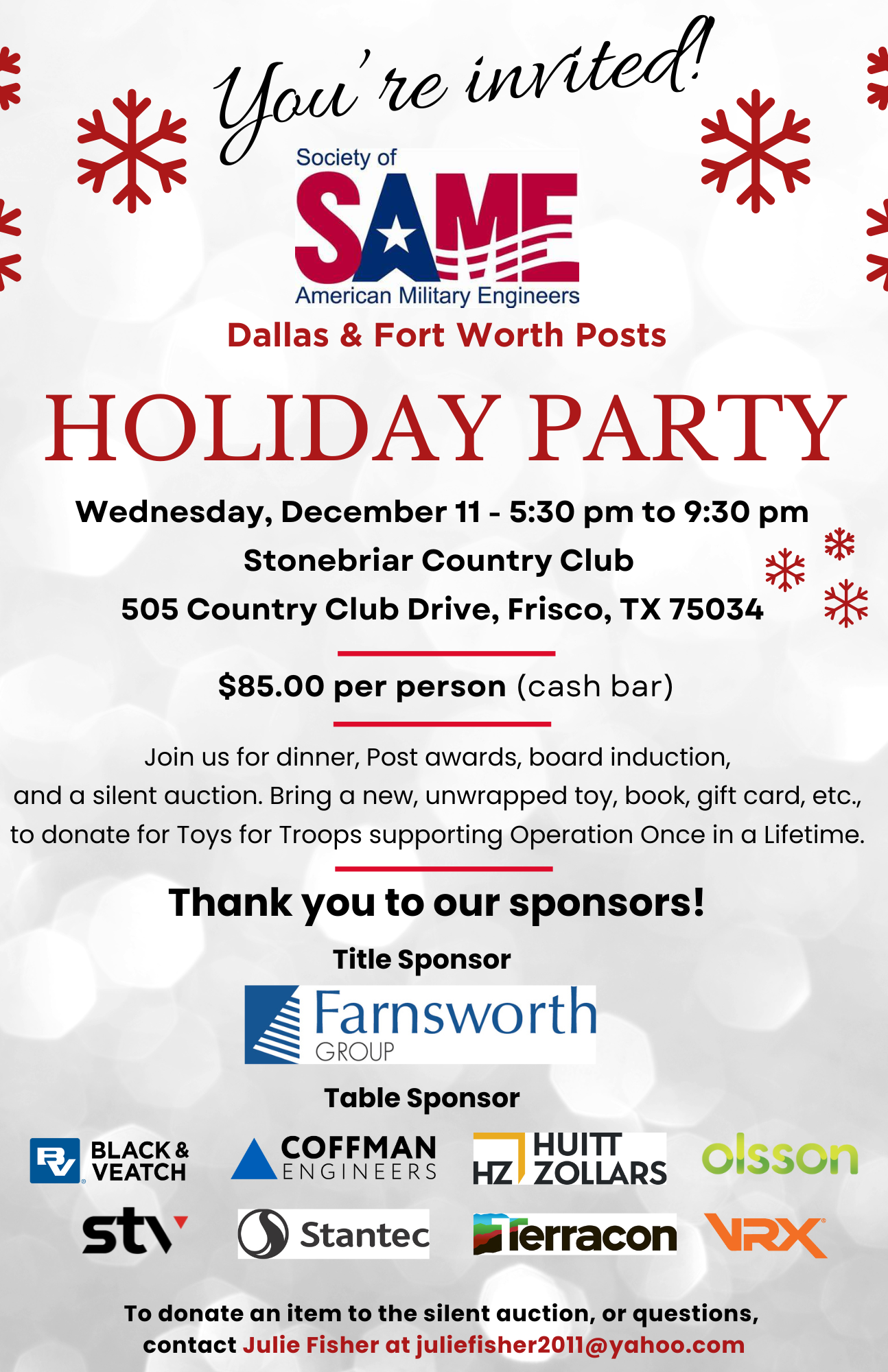 💼 Sponsorship Opportunities – Support SAME and showcase your company! All sponsorships include your logo on printed materials, the Dallas Post website, and social media.