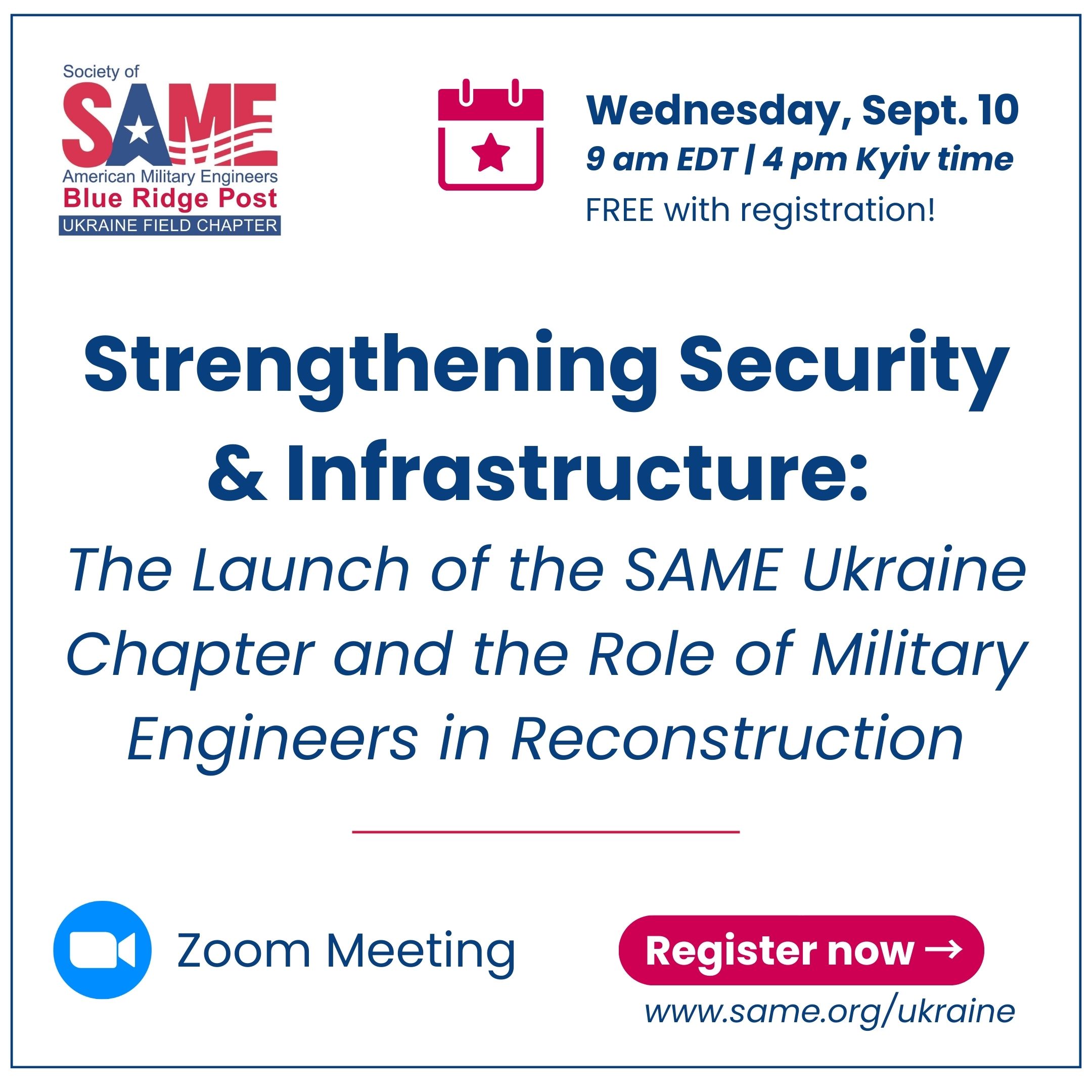 Join the SAME Ukraine Field Chapter for our inaugural event on Wednesday, Sept. 10 (9 am EDT | 4 pm Kyiv time). FREE with registration!