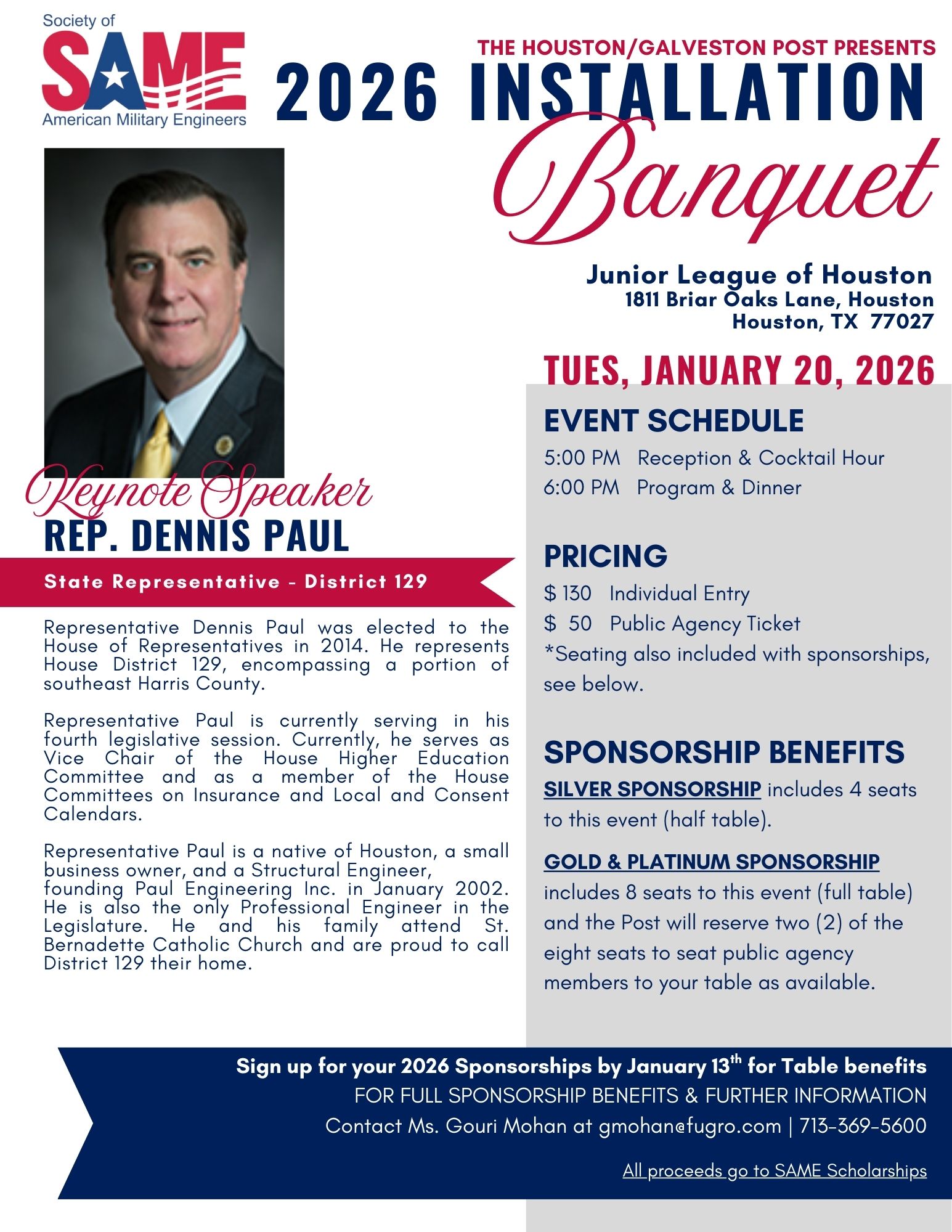 The 2026 Officer Installation Banquet will be held on January 20th, and honors the Post Distinguished Member and Young Member of the Year. In addition, the Post conducts a change of responsibility by installing the new Board of Directors and Post President. Sponsorship includes reserved half table (Silver – 4 seats) or full table (Gold/Platinum […] -