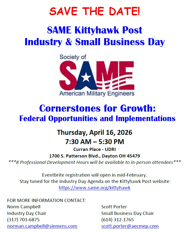 Registration for the 2026 SAME Kittyhawk Post Industry & Small Business Day is OPEN!