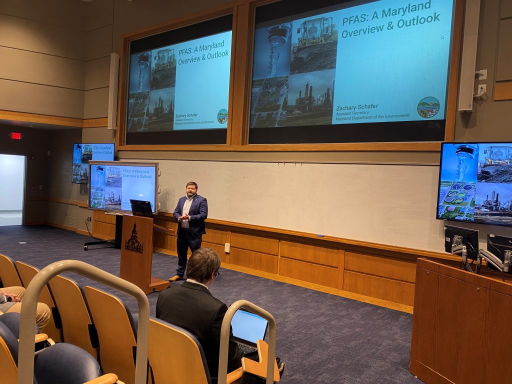 Zachary Schafer, assistant secretary at the Maryland Department of the Environment, provided an update on Maryland’s PFAS response, summarizing key regulatory actions and policy initiatives and describing how programs are coordinating to evaluate risk and guide statewide management.