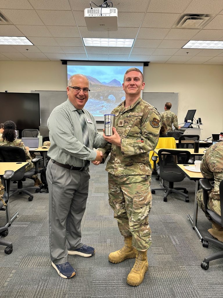 The SAME Kittyhawk Post welcomed the new Air Force Institute of Technology (AFIT) class of Graduate in Engineering Management GEM students. This event featured presentations from Joe DiMisa (Membership Chair and past Post President) USAF Col (Ret) Shawn Moore (past Post President), and Teri French (current Post President) on the post activities and benefits to belonging to SAME and the post. Twelve students transferred their post membership to Kittyhawk Post or joined for the first time. Congratulations to Capt. Logan Omer who won the door prize drawing of a Kittyhawk coffee tumbler. Welcome students to Dayton and Wright-Patterson AFB!