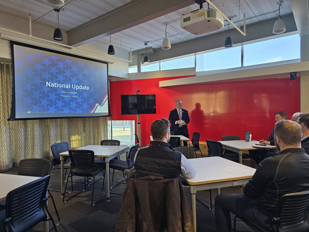The Omaha Post held the second quarterly session of the new year-long Newcomers’ Orientation on Thursday, January 22nd, 2026. Five SAME members who are either new to SAME or want to know more about what value SAME provides met at DLR’s Omaha Office to hear SAME National President Michael Huffstetler speak on the value of being a SAME member. The group then moved to DJ’s Dugout for some networking. The next quarterly session will be a tour of Offutt AFB on April 23rd. SAME members interested in the Newcomer’s Orientation program can contact Tom Svoboda, Post VP of Leadership and Mentoring, tsvoboda@schemmer.com for details.
