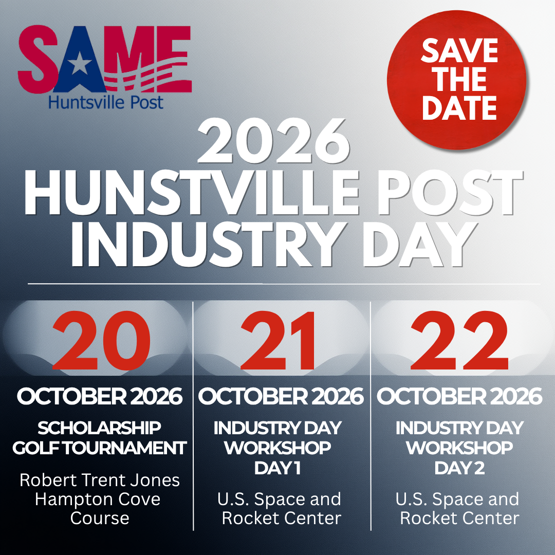 Join us October 20–22, 2026 for the SAME Huntsville Post Industry Day—one of the region’s premier events connecting industry and government. -