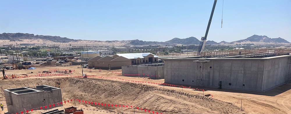 The new $155 million wastewater treatment plant will feature a 2-million-gal/day system and produce Tertiary Title 22 Disinfected Recycled Water, which can be used more broadly on the base. Once complete, the new and expanded plant will significantly increase non-potable water capacity for irrigation, vegetation, and utility systems across Twentynine Palms.