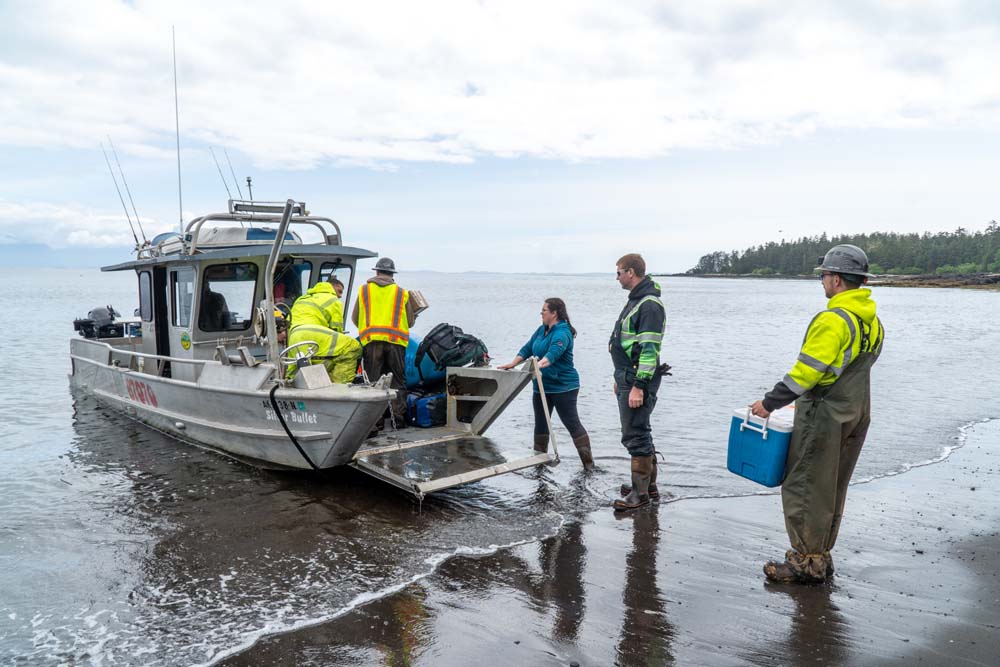 To finally achieve status complete, the project still required two additional unplanned mobilizations—with the final demobilization proving one of the most complex barging operations the contractor has experienced to date. A combination of a lightering barge and a boat was used to move around 350 sacks of material comprised of three waste streams with their unique handling instructions off the island and onto the ocean-going barge with the assistance of tugboats. The field team performed this complex operation twice a day in concert with the tide schedule. Fortunately, tide cycles aligned with daylight hours, avoiding riskier night work.