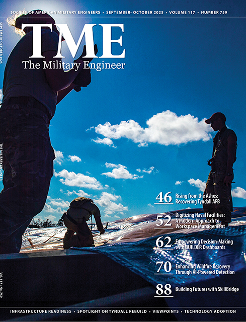 The November-December 2022 issue of TME features articles on Design & Construction, including coverage of a recent project to deliver a modern health facility within the design constraints of the historical medical district at Schofield Barracks, ongoing research at the U.S. Army Engineer Research & Development Center’s Cold Regions Research and Engineering Laboratory on using snow and ice to construct bridges for dry gap crossings, and design considerations for a first-of-its-kind land-based facility at China Lake to test submarine launch systems. In addition, this issue features a spotlight on missile defense activities over the years based on Alaskan soil.